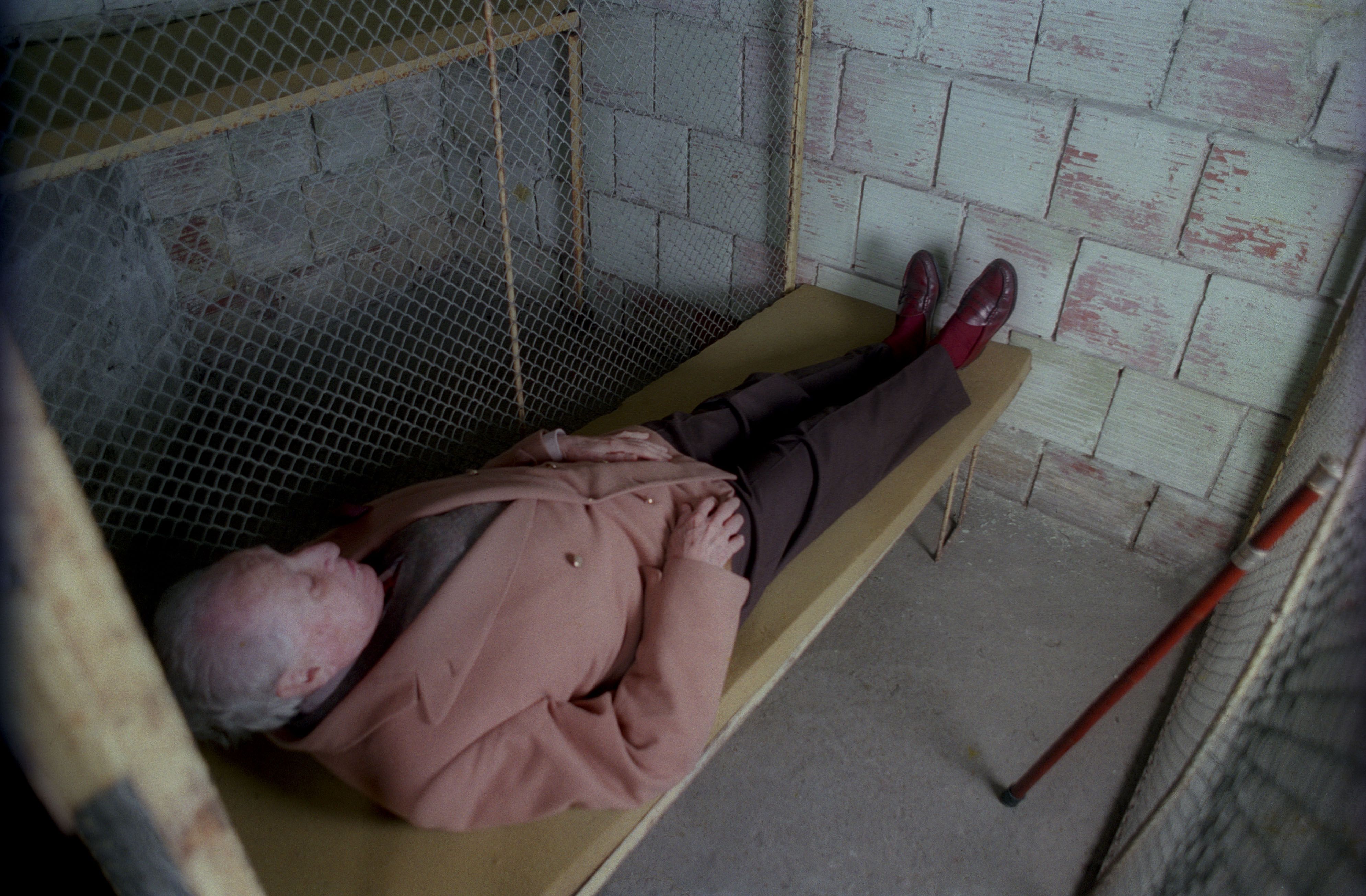 Entró en su celda, se sentó en su catre, apoyó el bastón de empuñadura de plata contra el tejido metálico que oficiaba de pared, miró hacia la puerta del cubículo donde yo me había parapetado para fotografiarlo y, sin que pudiera preverlo, se acostó por última vez en aquel camastro desde donde recorrió con los ojos su prisión.